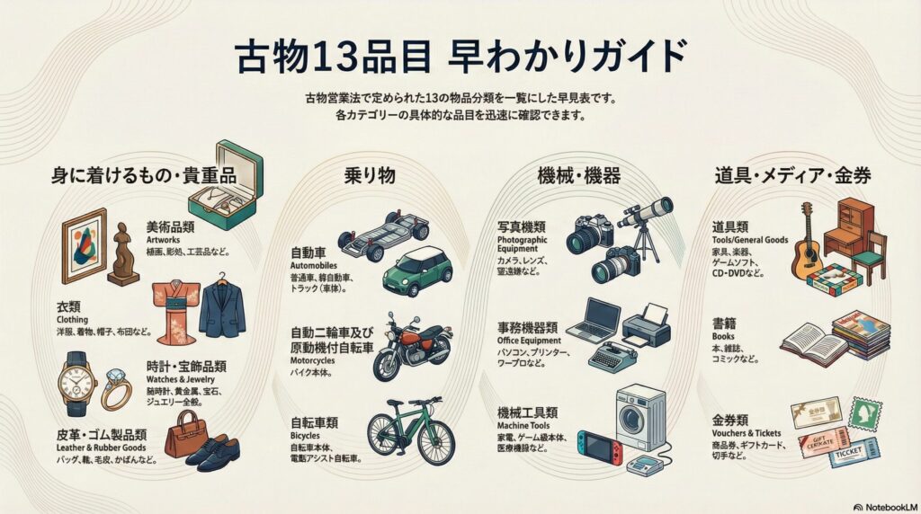 古物商許可で扱う”13品目”の特徴を把握しよう